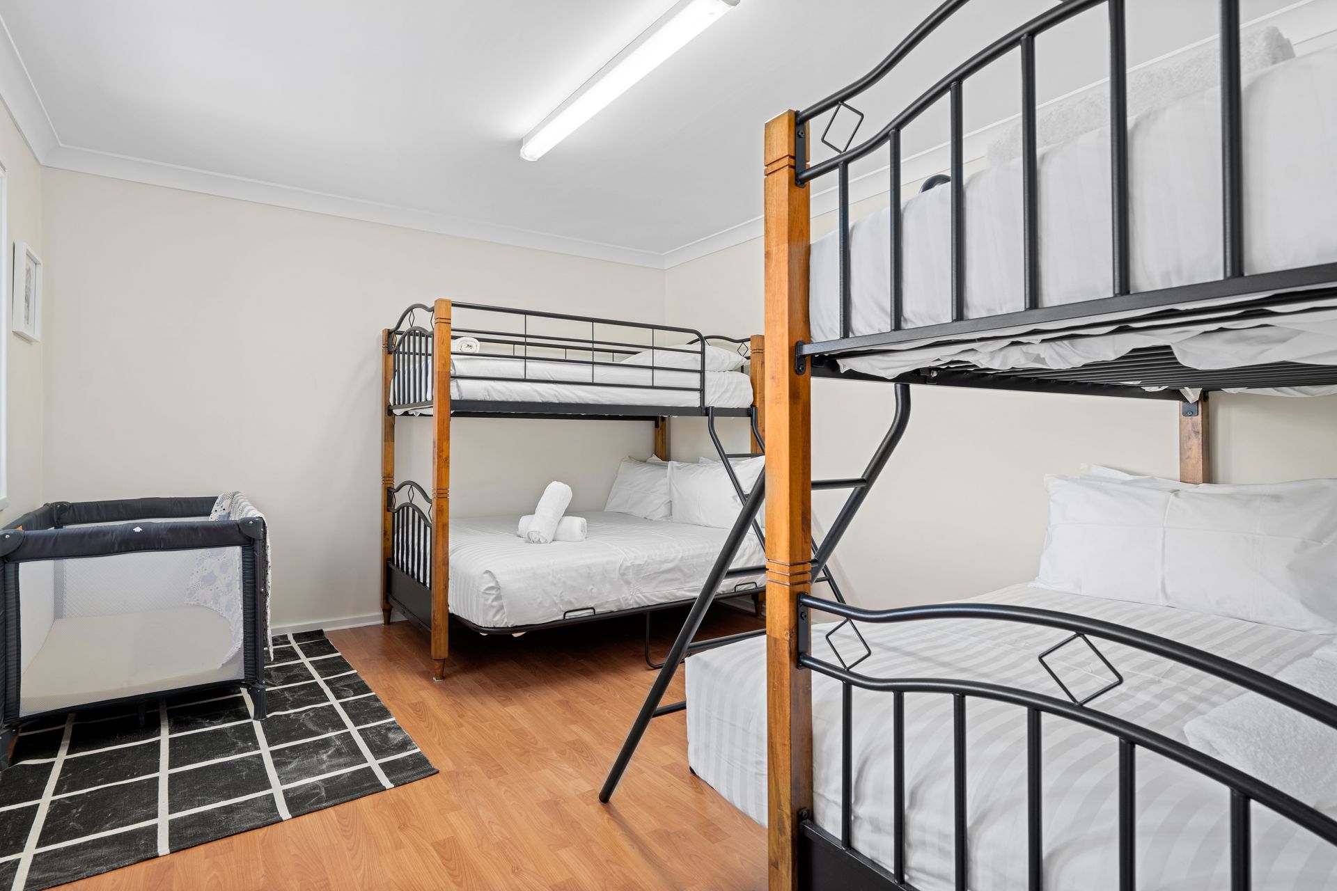 Bedroom 2 (Downstairs) 2 x Tri Bunks (double on bottom & single on top)