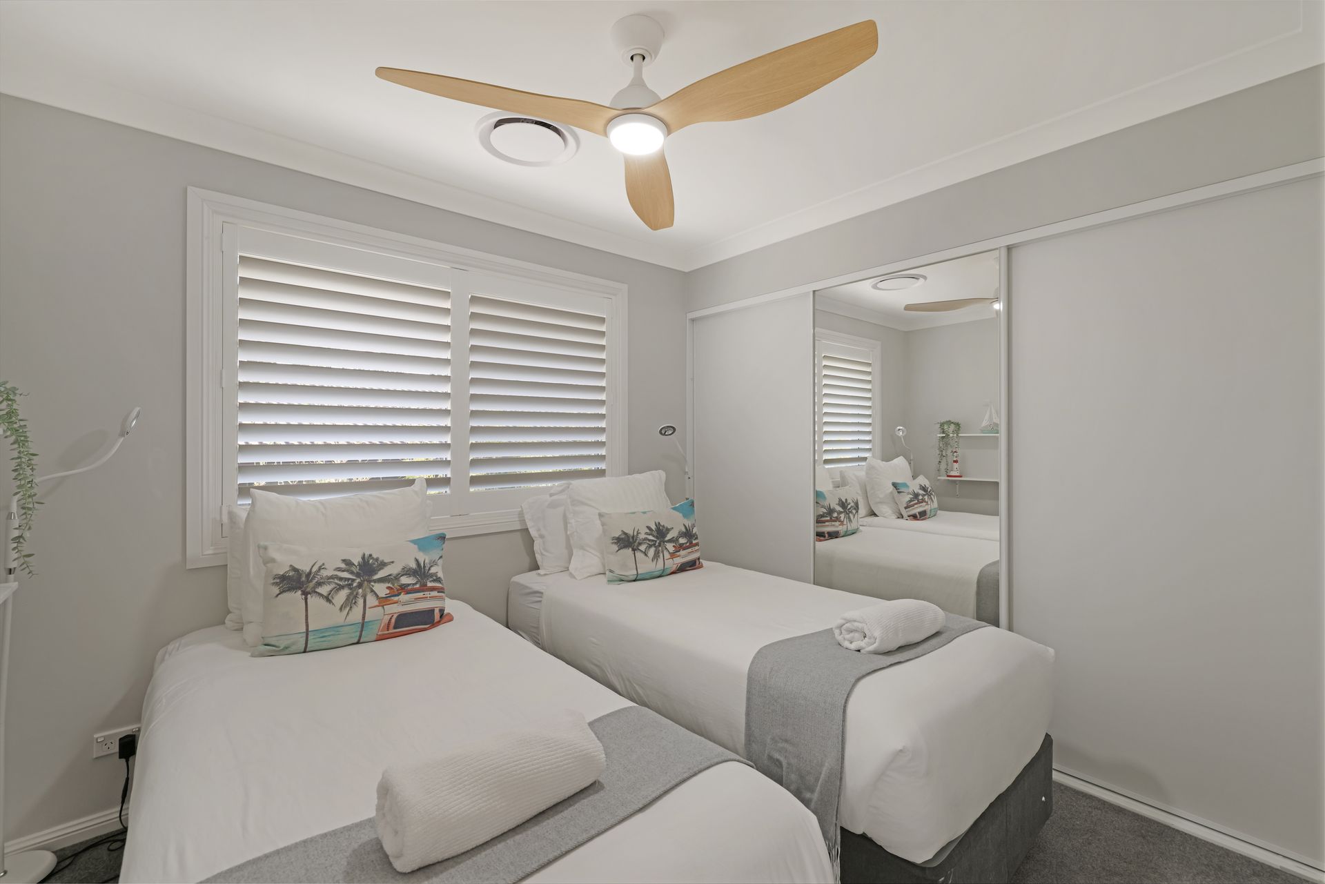 • Bedroom 3: 2 x King single beds, ceiling fan