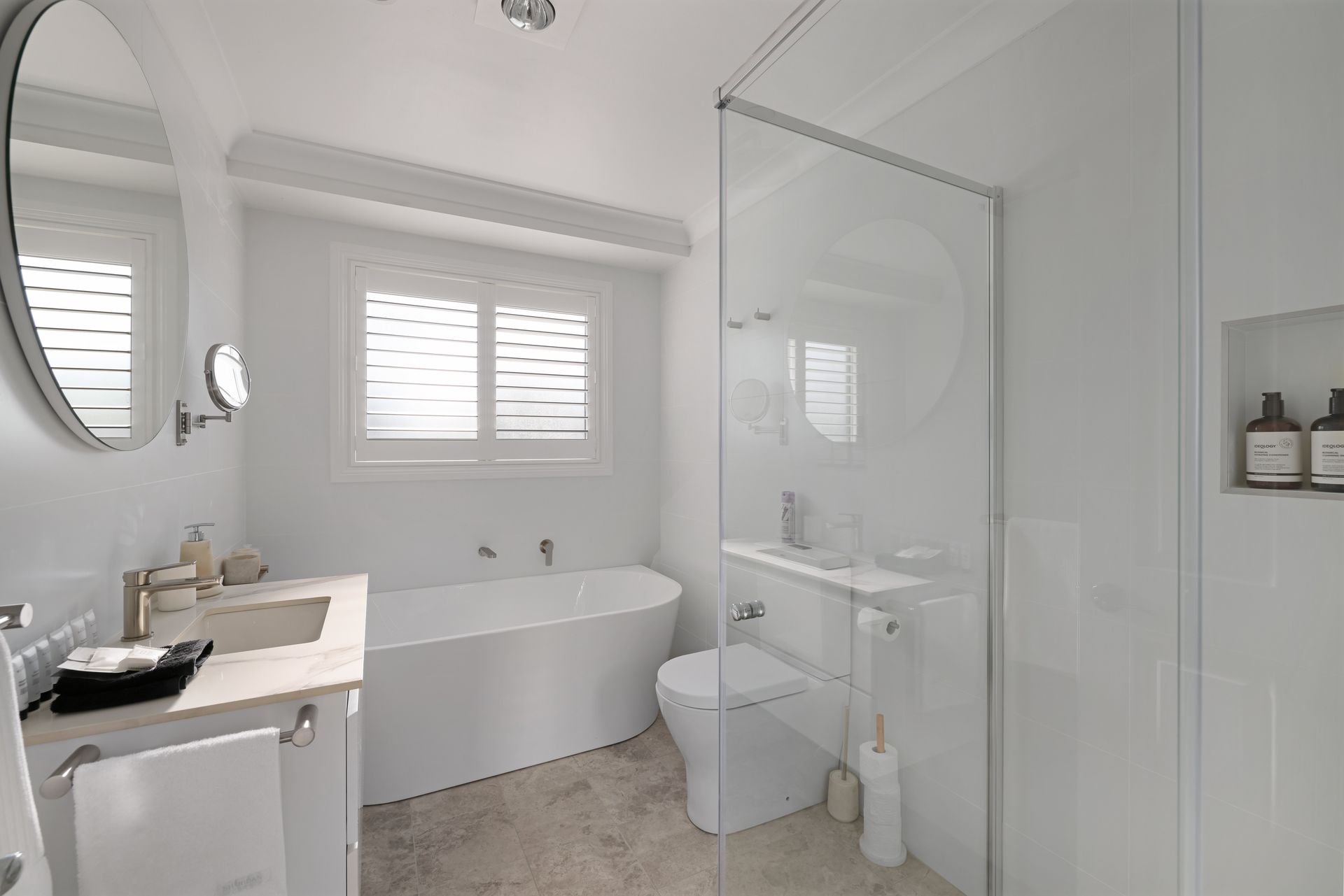 -Bedroom 1 (Master): Queen bed, ensuite with shower, toilet & vanity, hair dryer
