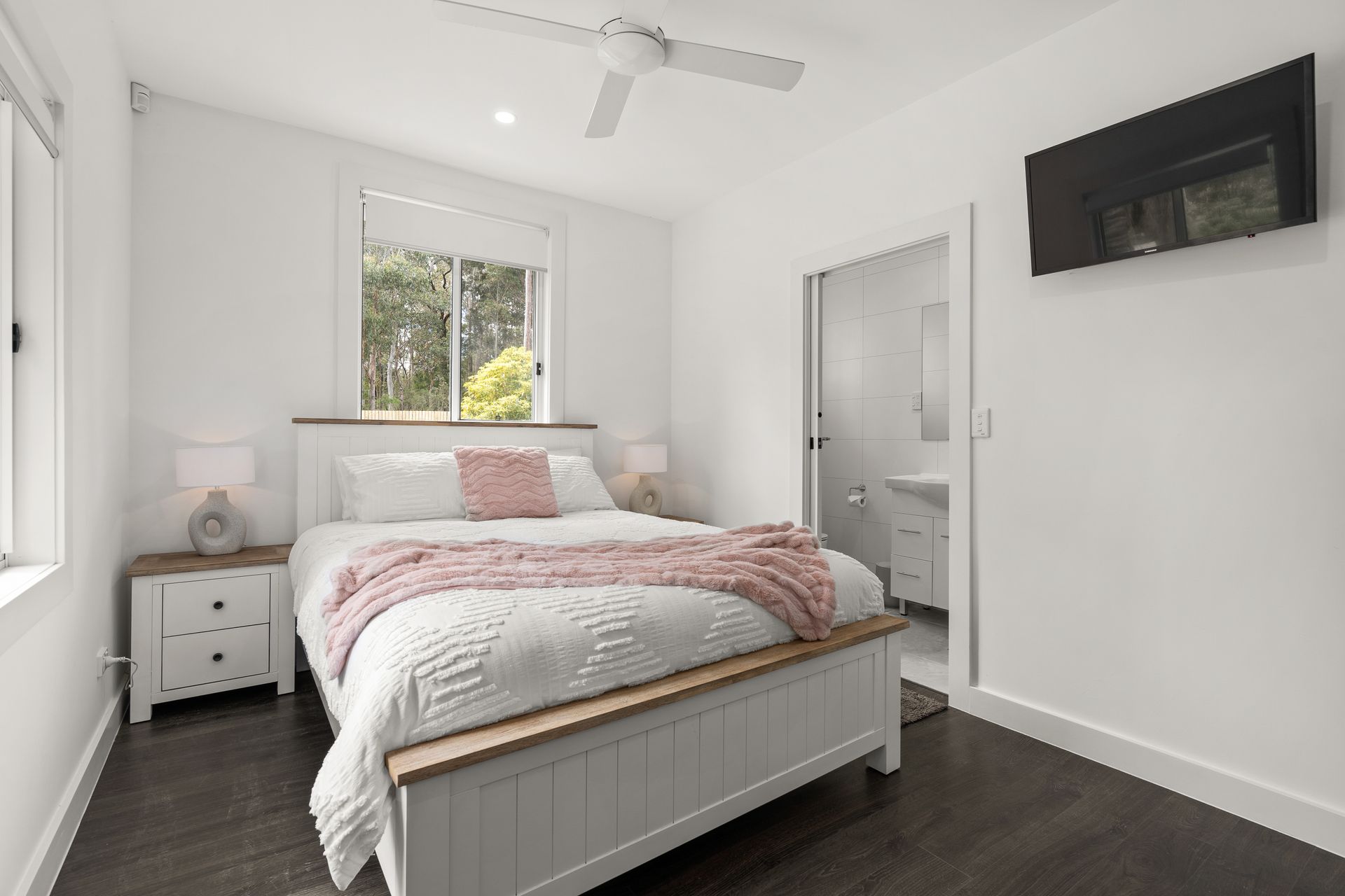 • Bedroom 1 – 1 x Queen Bed, ceiling fan, ensuite (shower, vanity, toilet)