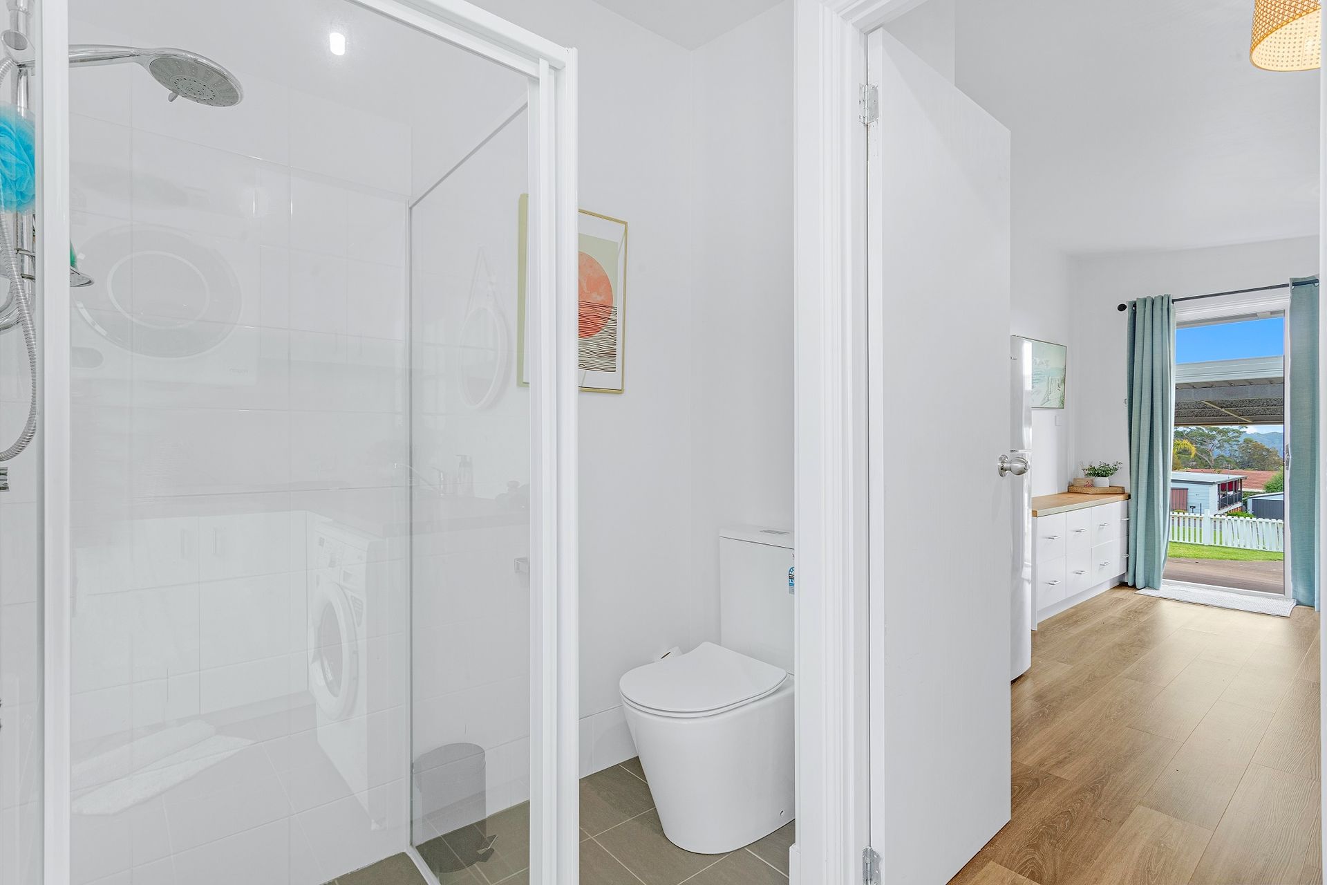 Bathroom / Laundry Combo: Shower, Toilet, Washing Machine & Dryer