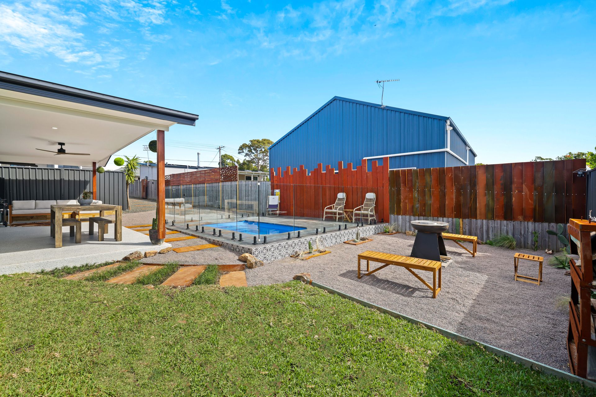 ✨ Covered Alfresco with Lounge Seating, TV & Dining Area
