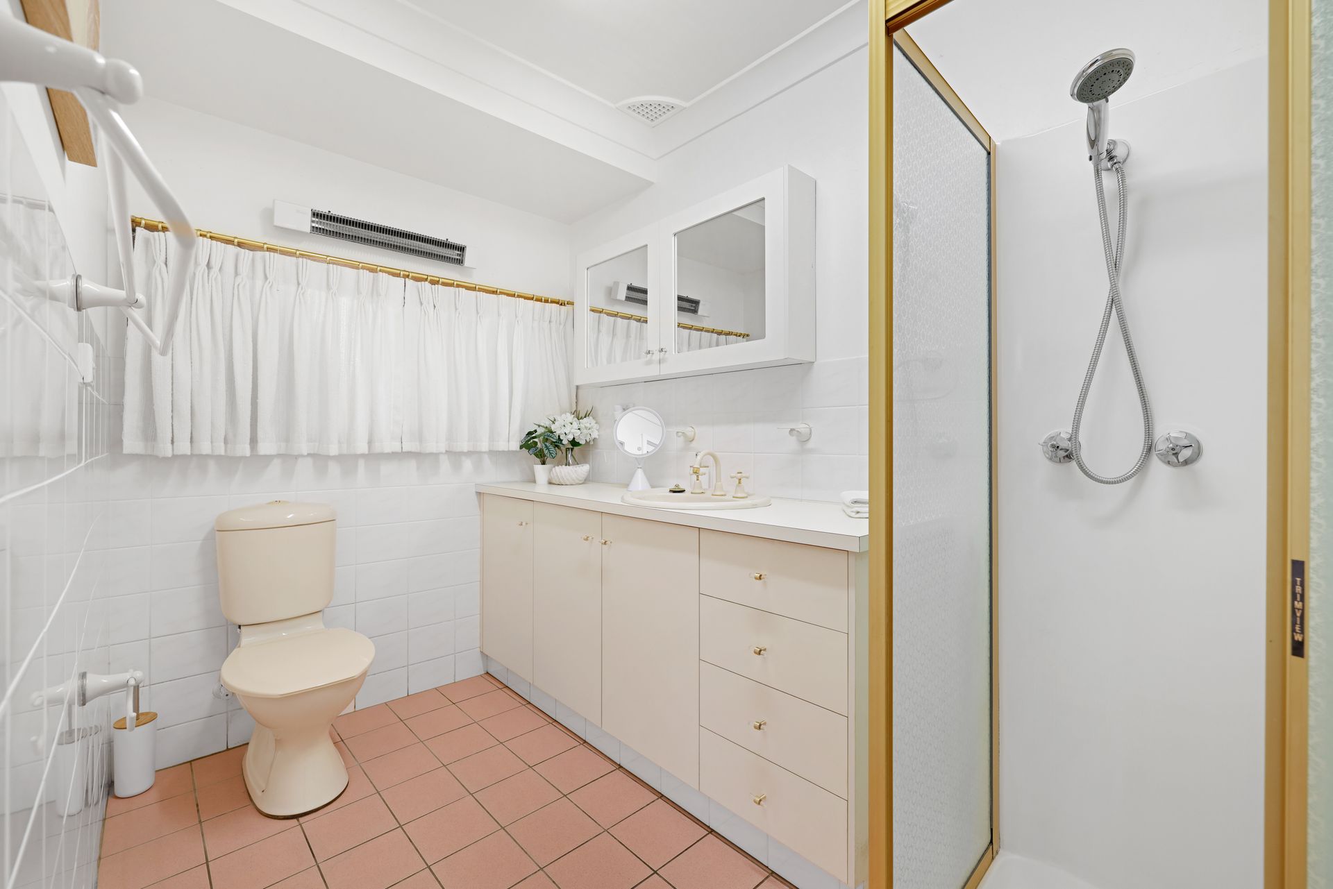 - Two full bathrooms, each with shower, toilet & vanity